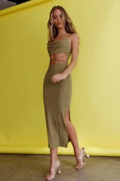 - Olive midi dress