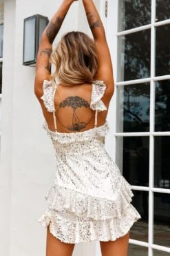 They’ll be lovestruck when you show up in this super cute little number. We are in love with the figure hugging silhouette with girly ruffle shoulders and hem. Perfect for a wedding or dressy dinner teamed with a clutch and nude heels.