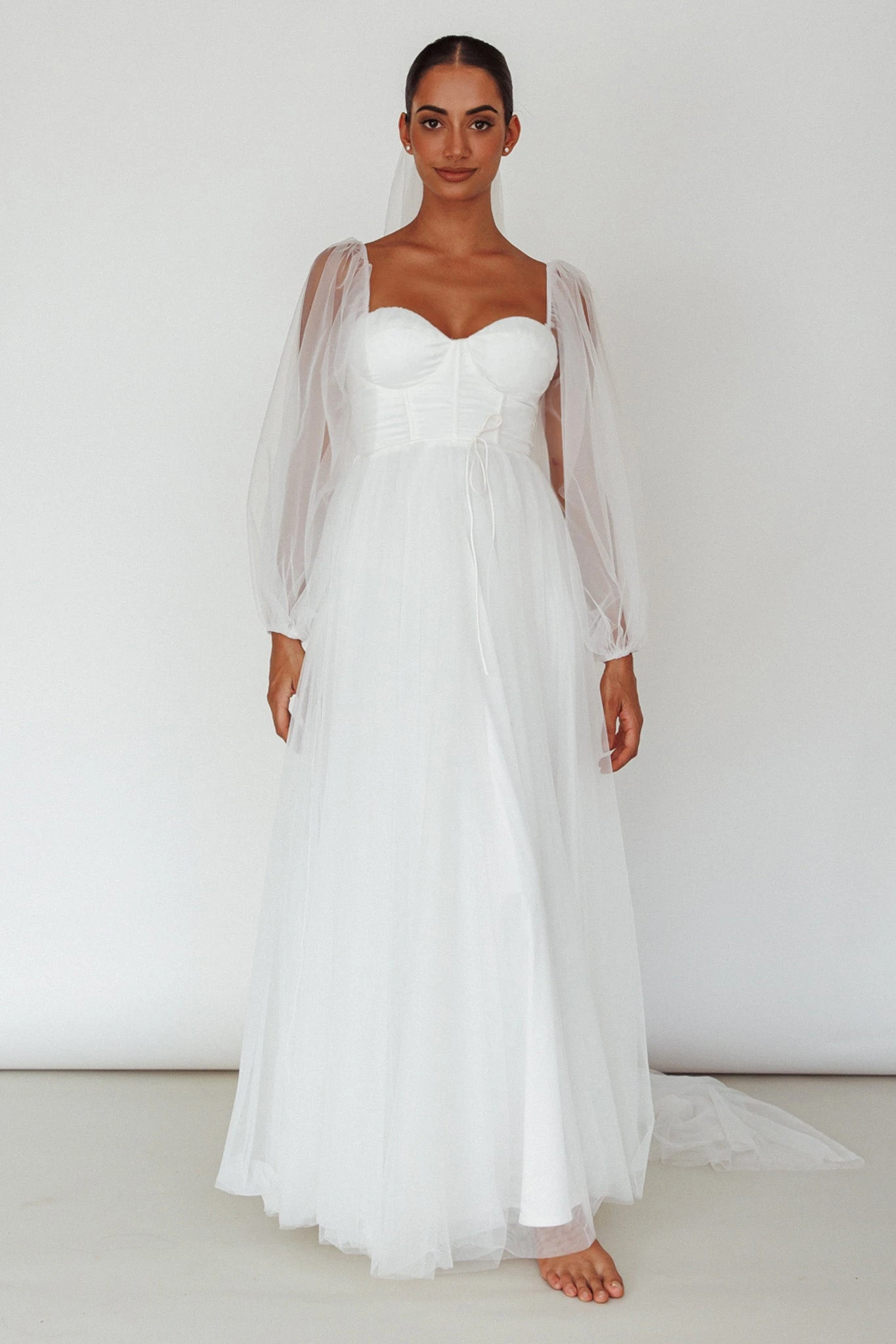 - Long, sheer sleeves