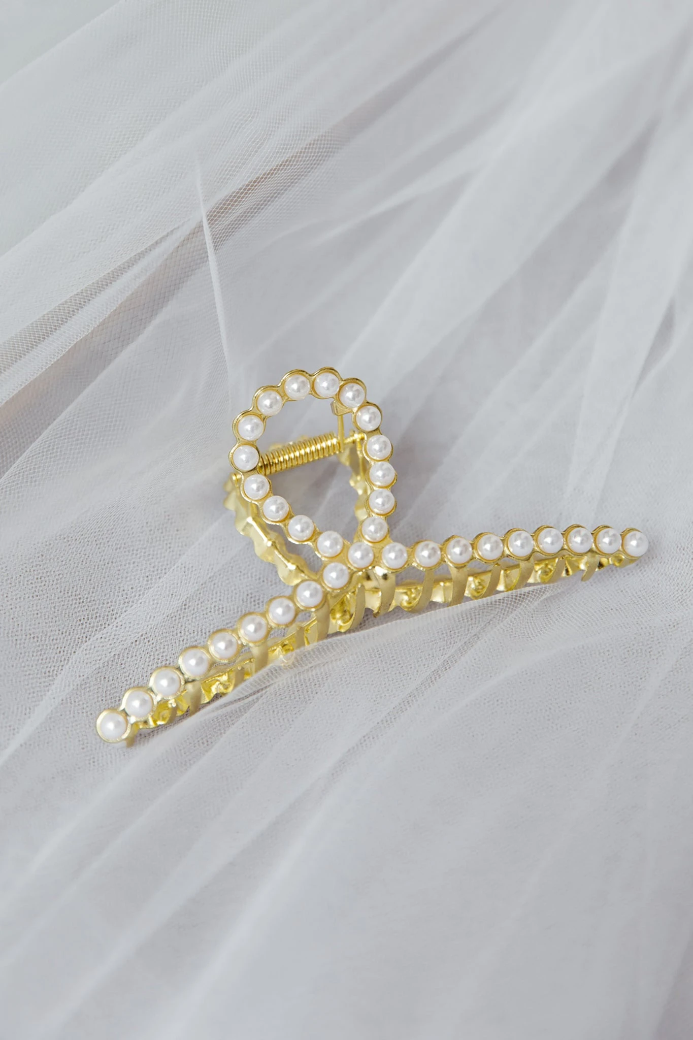 Hold your hair back in style with our gorgeous Hannah hair clip! Featuring a gold finish and faux pearl embellishment. This would look amazing with loose curls and our Laney dress!