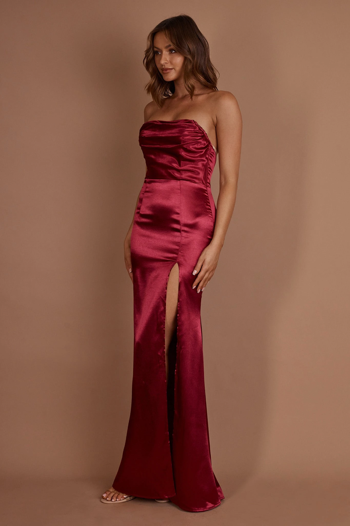 Make heads turn in our stunning Kalisa dress. Featuring a gorgeous, satin fabric and sexy, thigh-high split. It’s perfect for prom or a special occasion. Team it with strappy metallic heels and a satin clutch for a look that’ll make jaws drop.