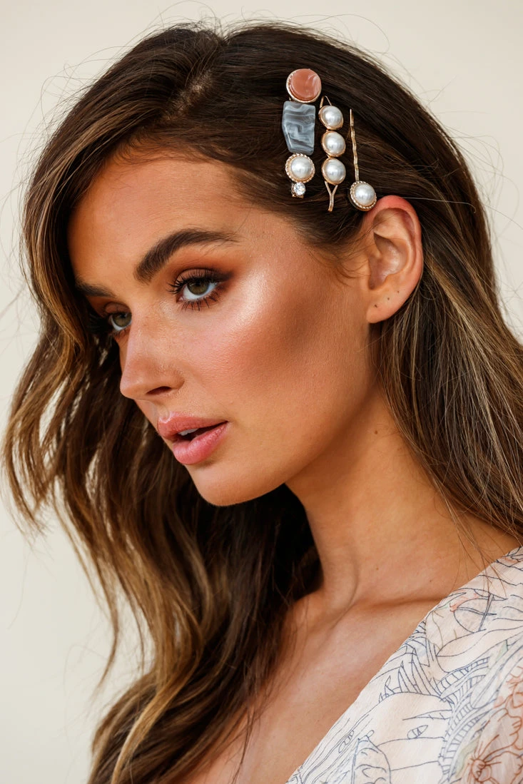Statement hair clips have become the biggest hair trend and we are here for it. Our Mabel clip trio is the perfect choice to complete any look. The pearl, pink and gray tones are giving us all the Spring feels and we are especially loving them teamed with our Laney dress.