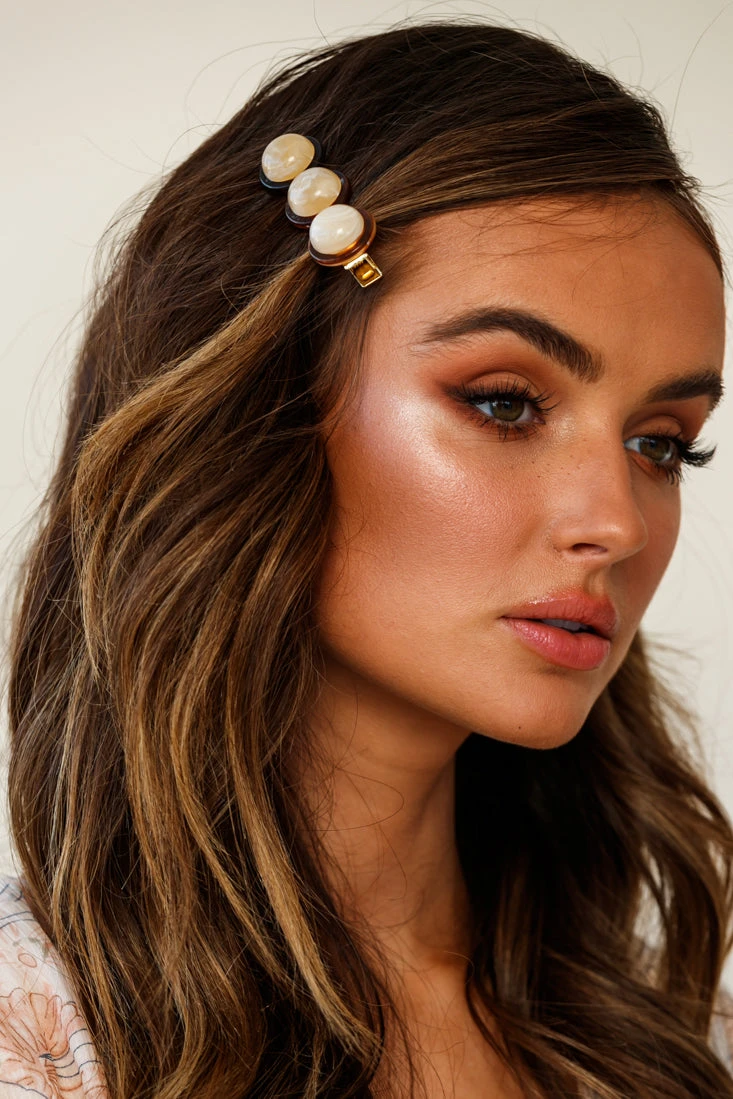 Statement hair clips have become this year’s biggest hair trend and we are here for it. Our Moorea clip is the perfect choice to complete any look. The tan tortoise shell and beige marble tones pair well with practically any look but we are especially loving it with our lace Cami dresses.