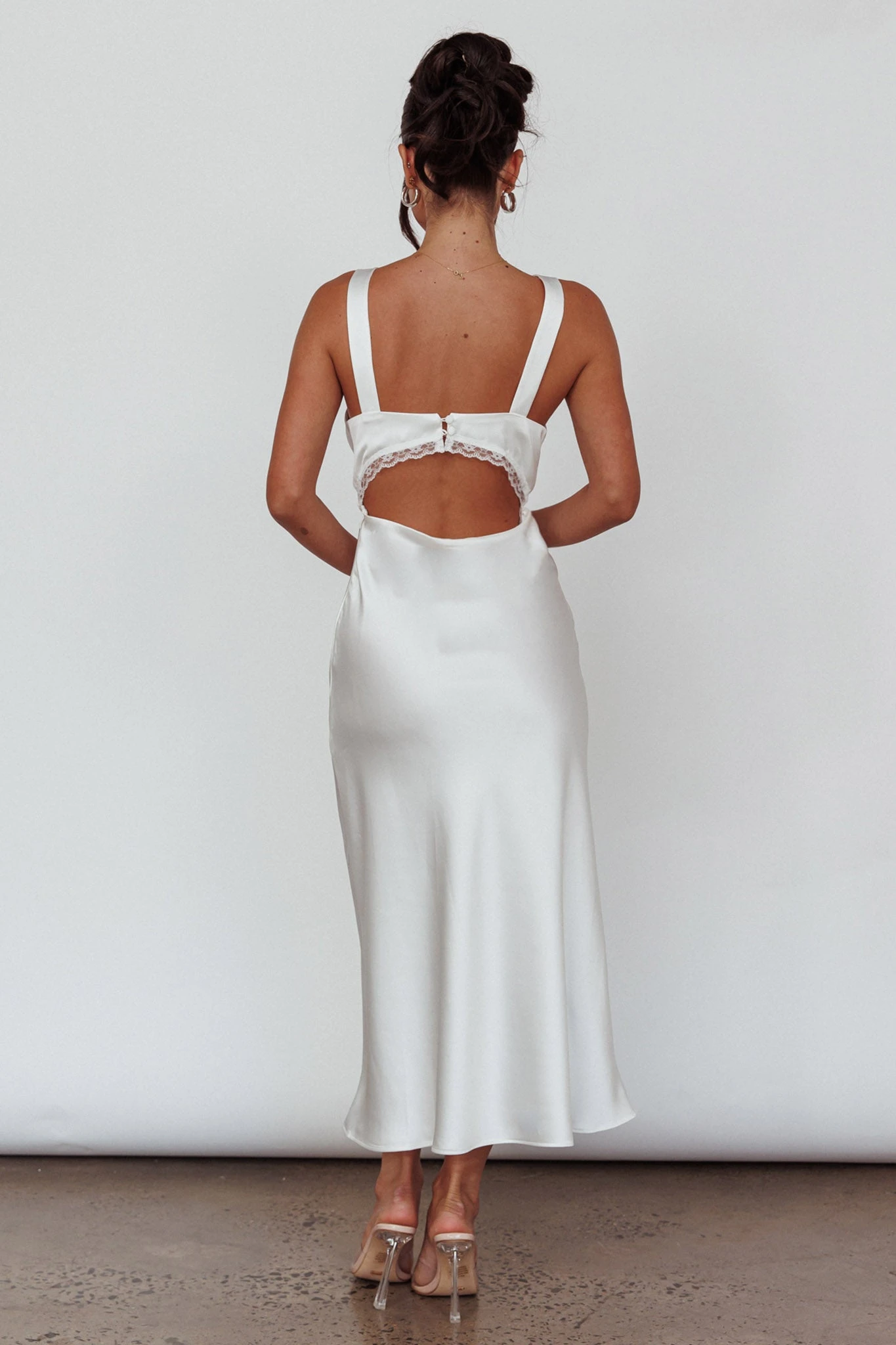 Steal the show in our gorgeous Nyah midi dress. Featuring the sweetest lace trim and cut-out back, it’s perfect for a bridal shower or romantic dinner date. Team it with mules and a purse for an unforgettable look.